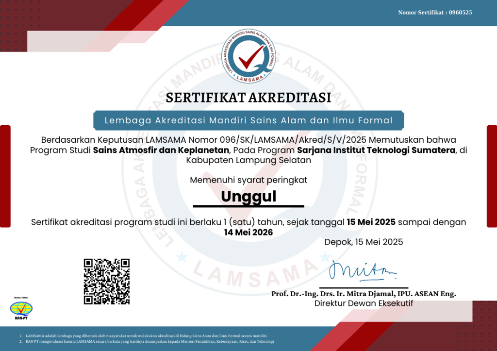 Pada Tahun 2025, Prodi Sains Atmosfer dan Keplanetan melakukan akreditasi keduanya melalui Lembaga Akreditasi Mandiri Sains Alam dan Ilmu Formal (LAMSAMA) dan memperoleh predikat Unggul.